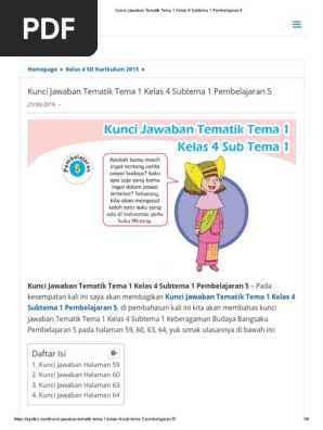 Kunci jawaban kelas 4 sd tema 1 subtema 1 pembelajaran 1 halaman 3, 4, 5, 6, 7, 8, 9, 10, 11, dan 12. Kunci jawaban buku tematik tema 1 kelas 4 sd subtema 3: Materi dan soal ini berdasarkan buku tematik terpadu kurikulum 2013 edisi revisi 2017 kelas 4 sd tema 8 memiliki judul indahnya kebersamaan dengan subtema 2 berjudul kebersamaan dalam keberagaman. Ide pokok adalah gagasan yang menjadi dasar sebuah paragraf. Kunci jawaban sd kunci jawaban tema 1 kelas 5, halaman 4, temukan ide pokok teks organ gerak manusia dan hewan pelajaran kelas 5 tematik 1 halaman 4 membahaw mengenai cara kerja organ gerak manusia dan hewan.